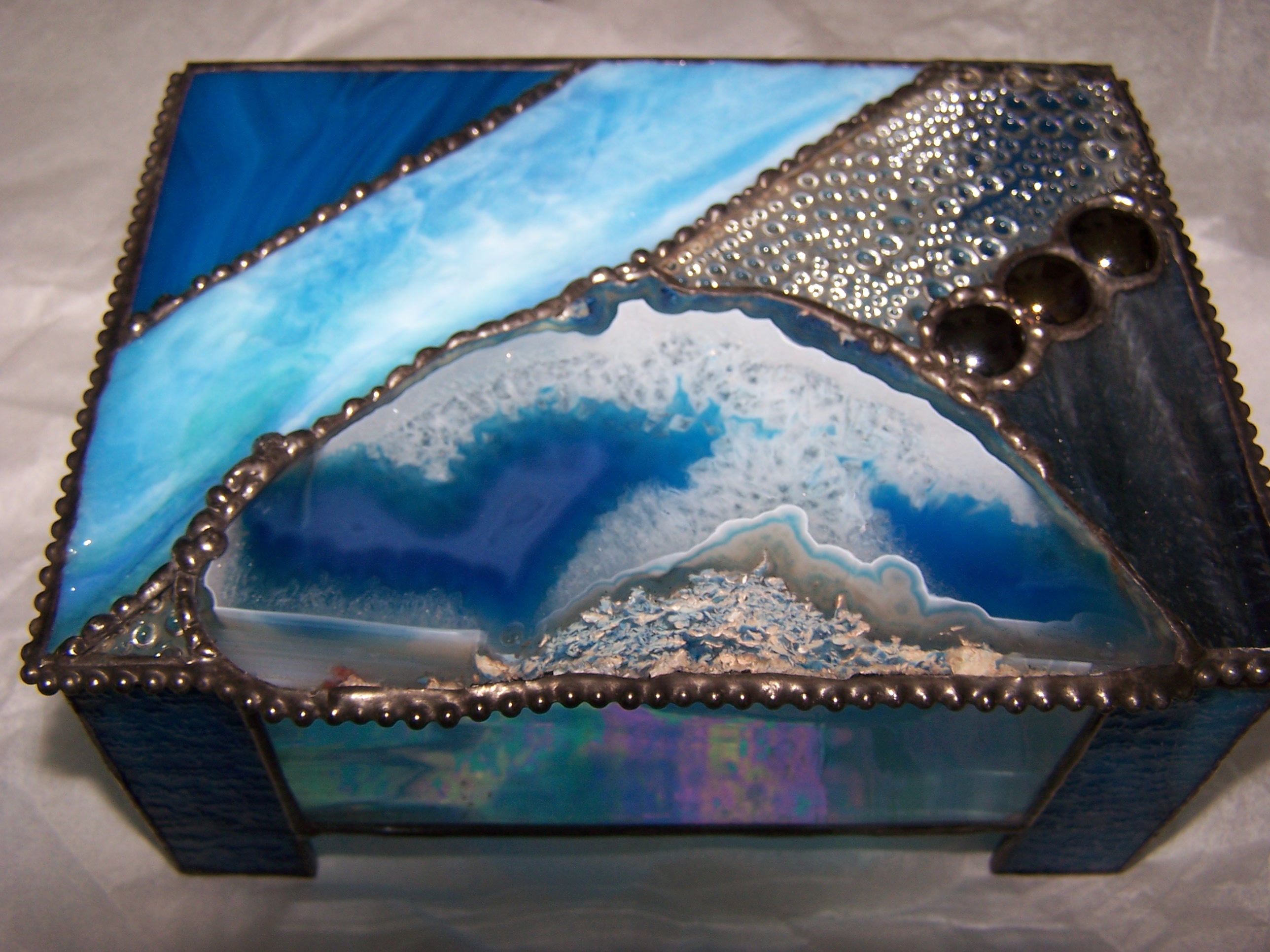 “A rainy day at the shore” Artglass and Brazilian Agate.
